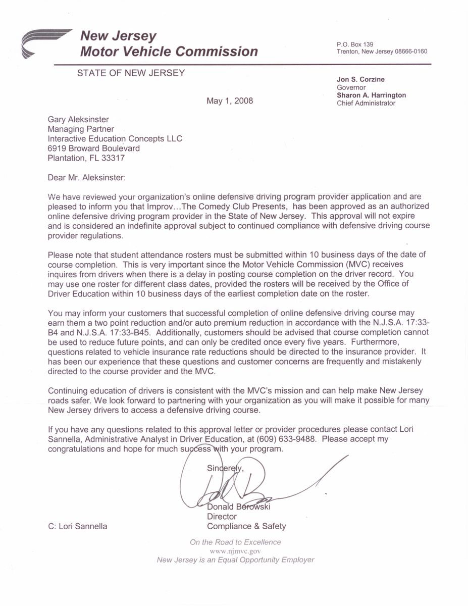 Driving course approved by the National Safety Council to the Permit Unit. If all requirements of the program are met, a wallet card certification will be sent by the Permit Unit, usually within 15 days of completion of the class. ... Fetch Doc
